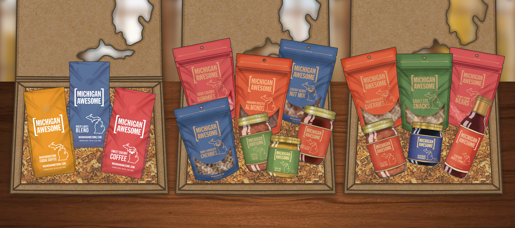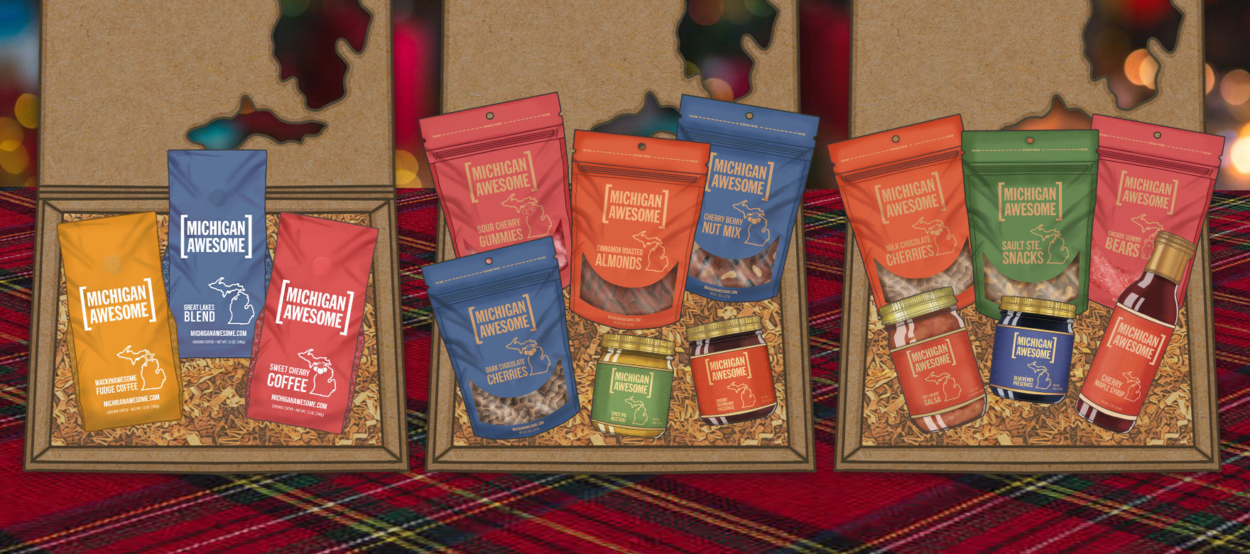 All of our gift boxes feature products proudly made in Michigan and come in a custom Michigan Awesome gift box. Whether you like sweet, salty or coffee, there is something for everyone.