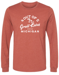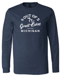 4 Out Of 5 Great Lakes PREFER Michigan. Printed on 52/48 combed and ringspun cotton/polyester long sleeve shirts in unisex sizes. Wear with pride!