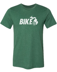Michigan has miles of picturesque bike paths and bike-friendly roads. Celebrate cycling in Michigan in a new "Bike Michigan" t-shirt!