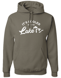 It's Cooler By The Lake! Anyone growing up in Michigan has heard this phrase more times than they can count. And it's true! Everything seems to get cooler by the lake. Cotton/Polyester blend fleece. Unisex sizes.