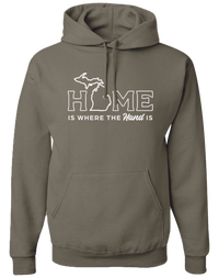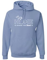 For anyone born or raised in Michigan, Home is Where the Hand is. Cotton/Polyester blend fleece. Unisex sizes.