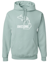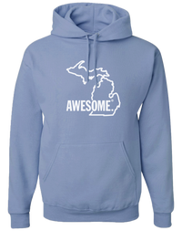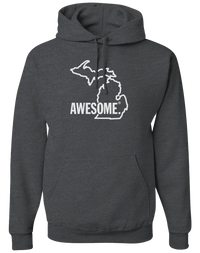 Simple and straightforward. Michigan is Awesome. Why else would we exist? This hoodie features the Michigan state outline with the word "Awesome" running through it. Made for anyone who thinks our state is great! Cotton/Polyester blend fleece. Unisex sizes.