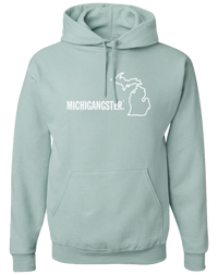 If you're a true Michigangster, this hoodie is for you! Cotton/Polyester blend fleece. Unisex sizes.